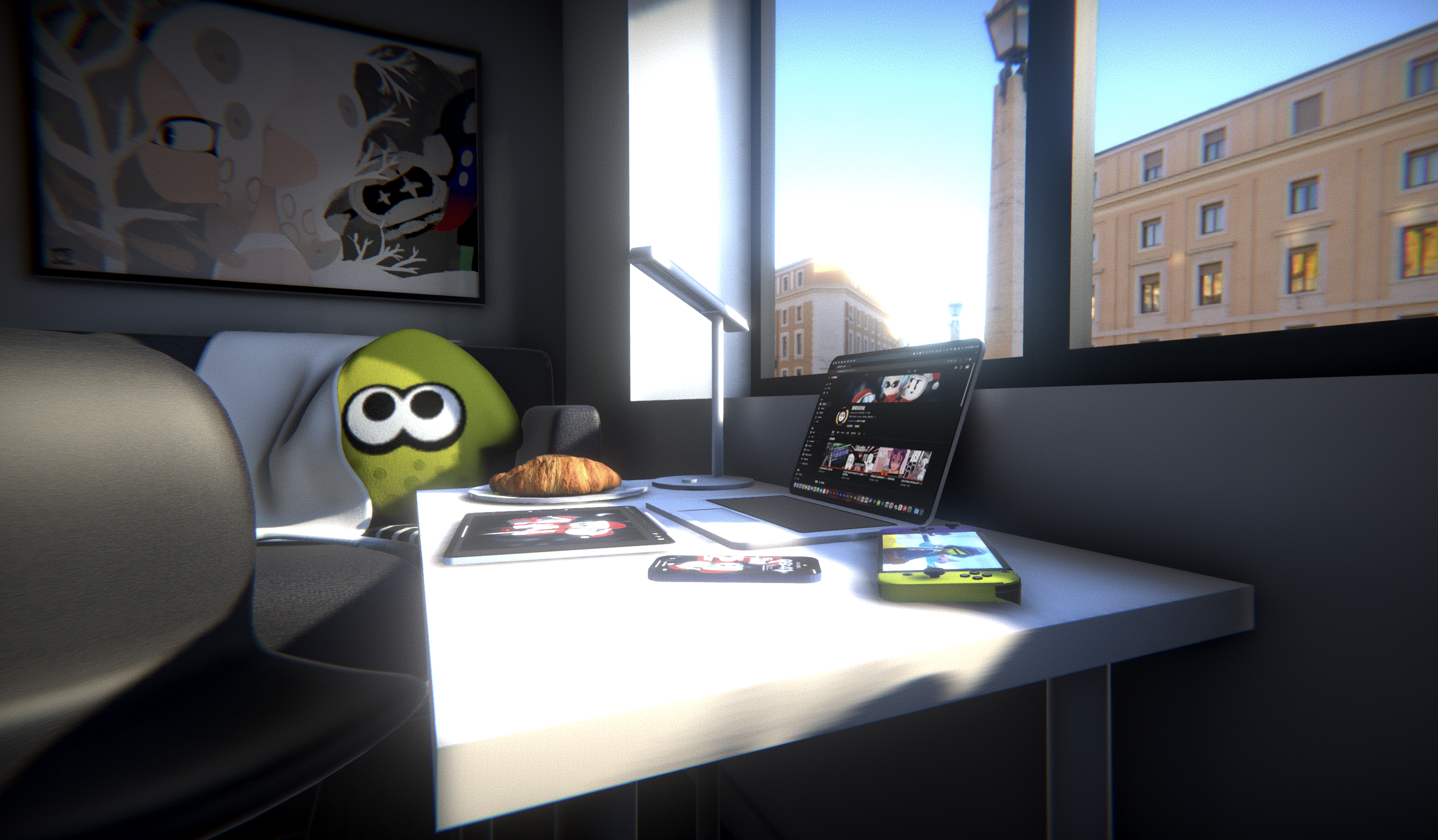 I use Blender, CLIP STUDIO PAINT to create my work.